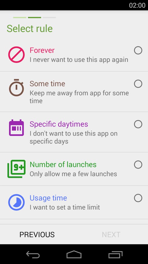 Según el desarrollador, muchas personas se dedican a utilizar WhatsApp, Facebook, sus respectivas aplicaciones de mensajería instantánea y por supuesto, aquella herramienta de cámara de fotos que les ayuda a realizar excelentes Selfies en todo instante, algo que al final del día representa una «pérdida de tiempo» que pudo haber sido utilizado en algún otro tipo de tarea productiva. Esta herramienta puede ser manejada de acuerdo al criterio de cada usuario, quien pondrá sus propias reglas para evitar tener que violar a las mismas.